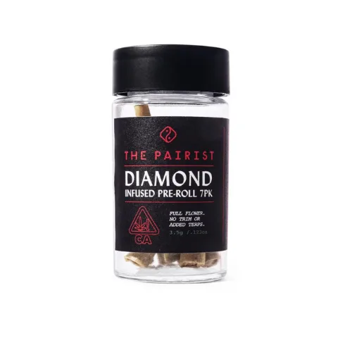 The GMO Infused 7pk Pre-roll offers a potent experience derived from the renowned indica-dominant cross of Girl Scout Cookies and Chemdawg. Each pre-roll combines terpene-rich flower sourced from legacy cultivators in California’s Emerald Triangle with THCa diamonds to enhance potency and overall effects. Crafted without trim or added terpenes, these pre-rolls deliver a clean, robust flavor profile true to the strain’s natural characteristics. The infusion of diamonds ensures a smooth, powerful smoke that highlights the full spectrum of cannabinoids and terpenes, delivering a deeply relaxing experience ideal for unwinding.